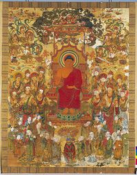[[Datei:Embroidery_Sakyamuni.jpg|200px|thumb|right| Sakyamuni und Begleiter]] | [[Datei:Embroidery_Sakyamuni.jpg|200px|thumb|right| Sakyamuni und Begleiter]] | ||