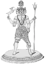 Nach dem Vishnu Purana wurde Rudra (hier mit Shiva gleichgesetzt) aus dem Zorn von Brahma geboren. Der wilde Rudra hatte damals eine Ardhanari Form, d.h. sein Körper war halb männlich und halb weiblich. Rudra teilte sich in zwei Teile :