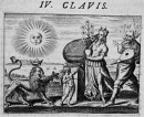 Der erste Teil enthält eine Abfolge von allegorisch verschlüsselten alchemischen Operationen, deren Abbildungen Worte beigefügt wurden. Maier's Lateinische Ausgabe im Tripus aureus enthält Holzschnitte für alle zwöf Schlüssel.