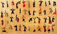Antikes Seidentuch mit Qigong-Übungen