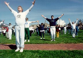 Falun Gong oder Falun Dafa (Pinyin Fǎlún gōng,Fǎlún dàfǎ : 'Dharma-Rad-Praktik','Gesetzesrad-Praktik') ist eine von Li Hongzhi verbreitete Praktik mit Bezug auf die daoistisch - buddhistische Tradition, die Meditation und Qigong-Übungen kombiniert. Die Praktik betont Moral (Wahrhaftigkeit, Barmherzigkeit und Nachsicht) und die Kultivierung der Tugend. Die entsprechende Massenbewegung wird von der KPCh seit 1999 als 'bösartige Sekte' und Kult bis ins Ausland verfolgt[4]. Am 23. Januar 2001 setzten sich fünf Anhänger des Falungong auf dem Platz des Himmlischen Friedens (Tian’anmen) in Beijing in Brand, um gegen die Unterdrückung ihrer buddhistisch orientierten Qigong - Bewegung zu protestieren. Auch das Qigong geriet in die Kritik der kommunistischen Partei, da Religion nach der chinesischen Verfasssung innerhalb staatlich genehmigter (und kontrollierter) religiöser Organisationen und Andachtsstätten stattfinden muss.