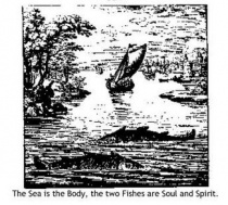 | [[Datei:tchem2.jpg| | | [[Datei:tchem2.jpg|210px|thumb|center|1 : Die See ist der Körper : Die zwei Fische sind Geist und Seele : Die Weisen werden Ihnen sagen, dass zwei Fische sind in unserem [[Meer]], ohne Fleisch oder Knochen. Lasst sie in ihrem eigenen Wasser gekocht werden. Dann werden sie auch ein riesiges Meer werden, die Weite, die kein Mensch beschreiben kann.]] | ||