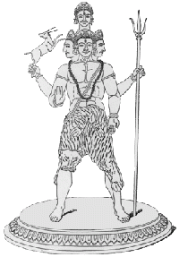 Nach dem soll Rudra aus der Stirn des Gottes Brahma geboren worden sein, als dieser wütend war. Nur sehr wenige Hymnen des Rigveda, insgesamt vier, sind an diesen Gott gerichtet, was mit seiner Verdrängung durch seine Hypostase Shiva in Kult und sakraler Literatur zusammenhängen mag.