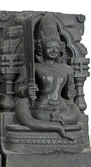 Er wird so auch als unterer Teil des Nagakönigs Vasuki angesehen, der auch mit einer Juwelenkrone dargestellt wird und auch als Schlange um den Hals Shiva's.