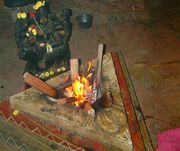 Das Homa oder Deva-yajna ist ein Ritual, bei dem dem Feuer Opfergaben gegeben werden, das sie der Gottheit zutragen soll.
