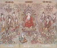 Teilweise wird er auch in Trinität mit den Bodhisattvas Avalokiteshvara und Prajñāpāramitā dargestellt[7].