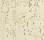 Im (allegorischen) Buch der Himmelskuh tritt Hathor als Unterstützerin von Re und Vernichterin der Menschen auf.[1]