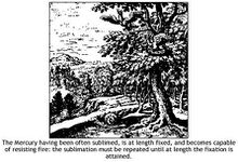 7 : Der oft sublimierte Mercur ist endlich fixiert und wird fähig dem Feuer zu widerstehen - die Sublimation muss wiederholt werden, bis endlich die Fixation erreicht wird