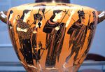 Helena wurde zuerst von Theseus entführt, aber von den Dioskuren befreit. Nachdem die Dioskuren gestorben waren und Polydeukes von da an mit seinem Bruder Kastor zwischen dem Olymp und dem Hades wanderte, war Menelaos('Volksführer', Beiname : der Blonde) König von Sparta geworden.