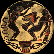 Der Titan Prometheus stahl nach der Sage den Göttern das Feuer und brachte es den Menschen. Er wurde deswegen auf Befehl von Zeus gefesselt und in der Einöde des Kaukasus festgeschmiedet, wo ihn der Adler regelmäßig aufsuchte und von seiner Leber fraß, die sich danach aber stets erneuerte. Mach langer Zeit erlöste der Held Herakles ihn von dieser Qual, indem er den Adler mit einem Pfeil erlegte.