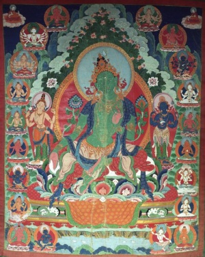 Als große grüne Göttin Arya-Tara (tib. Jetsun Dolma; Wylie: sgrol ma; THDL: Drölma; )[1] oder Shyama Tara(Syamatara) hat Tara 108 Namen[2]. Diesbezüglich wird sie mit einer Mala von 108 Perlen verehrt.