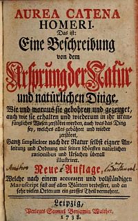 Der Titel Die goldene Kette Homers bezieht sich evtl. auf Gesang 8 der Ilias[1] :: Eine goldene Kette befestigend oben am Himmel, Hängt dann all ihr Götter euch an und ihr Göttinnen alle.