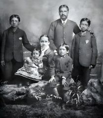 English: Sri Aurobindo with his family father Dr. K.D. Ghose, his mother Swarnalata Devi and four siblings: [From left to right: Benoy Bhushan, Sarojini, Sri Aurobindo and Manmohan.]