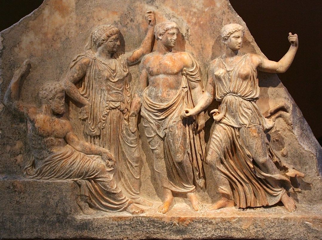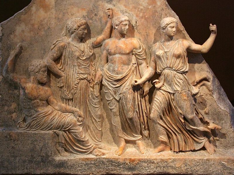 Leto with Zeus and their children, 420-410 BC, marble. Archaeological Museum of Brauron