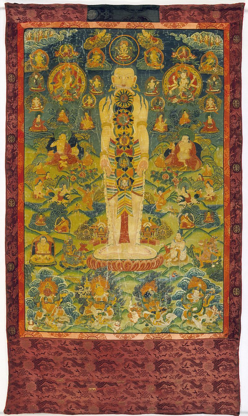 Datei:Man with Diagrams of Newar Yogic Six Chakra.jpg