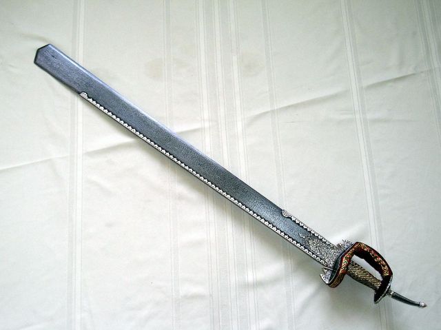 | aktuell | 17:46, 21. Okt. 2023 | 1.024 × 766 (107 KB) | Adm1 (Diskussion | Beiträge) | https://commons.wikimedia.org/wiki/File:Rajput_Khanda.jpg A Khanda – an Indian sword. Source Transferred from en.wikipedia to Commons by Quibik using CommonsHelper. Author Archit Patel at English Wikipedia Licensing Public domain This work has been released into the public domain by its author, Archit Patel at English Wikipedia. This applies worldwide. |