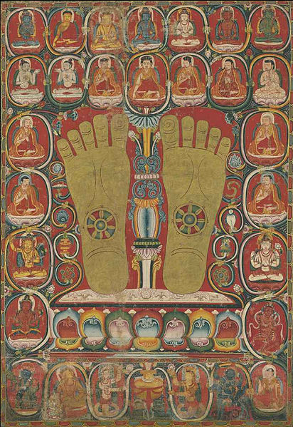 -> commons.wikimedia.org/wiki/File:Thangka_with_the_Footprints_of_the_Third_Karmapa,_Rangjung_Dorje_%285497466357%29.jpg