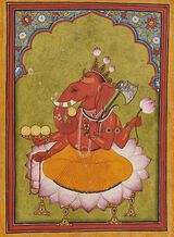 Ganesha (Sanskrit : Gaṇeśa, 'Herr der Ganas', Herr der Scharen) ist im Hinduismus ein elefantenköpfiger Sohn Parvatis, der zwecks Erlangung von Glück und zur Beseitigung von Hindernissen angerufen wird. Er zählt zu den fünf Göttern des Panchayatana des Smarta Sampradaya.