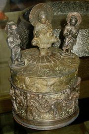 Ein weiterer Fördereer war König Menander aus Baktrien, der den Punjab eroberte und sein Reich zwischen 165 v. Chr. bis 130 v. Chr. über Pakistan bis zum Nordwesten Indiens ausweitete. Er gilt als großer Förderer des Buddhismus unter den Griechischstämmigen (Yavana, Yona).