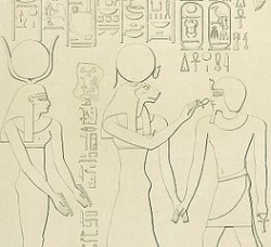 Hathor wurde auch mit einer Sistrum - Rassel abgebildet, mit der auch die römisierte Isis und Nefartari in Abu Simbel abgebildet wurden.