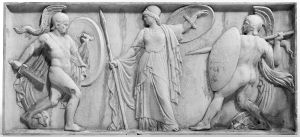 Die Griechen triumphieren schließlich dank der List des Odysseus, sich mit anderen Kriegern in einem hölzernen Pferd zu verstecken, das sie den Trojanern als Geschenk zurücklassen. So gelangen sie in die Stadt und überfallen sie in der Nacht. Troja ist geschlagen und geht würdevoll unter. Interessant ist, dass Apollon und Athene auf Seiten der Trojaner kämpfen.