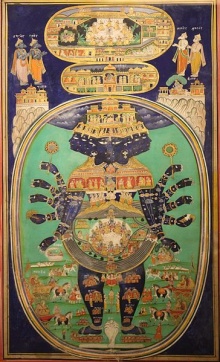 Im Kapitel 11 der Bhagavad Gita sieht Arjuna Krishna in seiner auch furchterregenden kosmischen Gestalt[4].