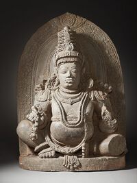 Nach der hinduistischen Mythology war Kubera der Sohn des Weisen ‘Visravas’. Daher stammt sein Name Vaisravana, und so ist Ravana sein Halbbruder, da er eine andere Mutter hatte. Er erscheint auch in Szenarien des Ramayana und gilt auch als König der Yakshas(Naturgeister) und als Loka-pala - bzw. als dhi-pala - Schützer sowie als Freund Shivas.