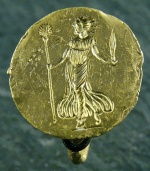 Ring mit Mänade, die einen Thyrsos -Stab und eine Fackel hält