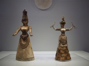 Über die monoischen Schlangengöttinnen oder -Priesterinnen ist viel diskutiert worden, und man unterstellte ihnen einen Fruchtbarkeitskult. Da sie bei entblößtem Oberkörper und ausgestreckten Armen einen langen gestuften Rock tragen, stellen sie wohl weniger ein Fruchtbarkeitssymbol dar. Der Stufen-Rock kann auch auf Ebenen der Unterwelt hindeuten. Einige Statuen haben zusätzlich ein kleines Wesen auf dem Kopf.