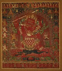 Roter Yamari flankiert von Virupa und Dombi Heruka