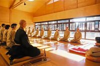 Geübt wird hier wie im Soto auch die Zazen -Sitzmeditation[1] in Stille mit dem Gesicht zur Mitte des Raumes. Daneben wird die Kinhin - Gehmeditation in Achtsamkeit und Bewusstheit geübt, die im Gegenuhrzeigersinn und mit unterschiedlichem Tempo ausgeführt wird.