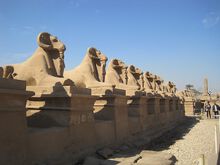 Die ruhenden Sphingen (Criosphinx) in Karnak haben einen Widderkopf.
