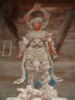 Lokapala Virupaksha(jap. 広目天 Kōmokuten - Der alles Beobachtende) regiert im Westen und ist der Schützer, der alles beobachtet, was sich im Königreich tut. Er ist von roter Körperfarbe. Sein Attribut ist eine geöffnete Sutrarolle, ein Stupa oder metallenes Gefäß, in dem Nagarjuna buddhistische Schriften fand. Er wird nur in der Vierergruppe gezeigt.[4]